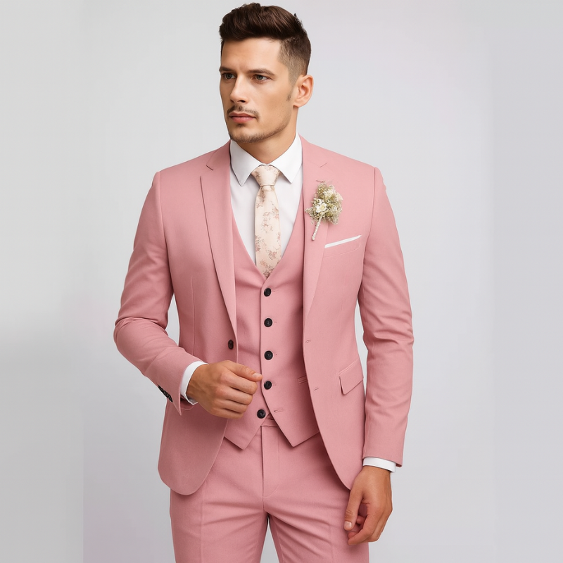 Elegante Abito da Uomo Slim Fit a Tre Pezzi con Giacca, Gilet e Pantaloni Abbinati