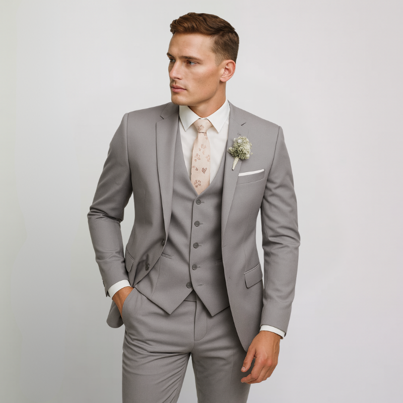 Elegante Abito da Uomo Slim Fit a Tre Pezzi con Giacca, Gilet e Pantaloni