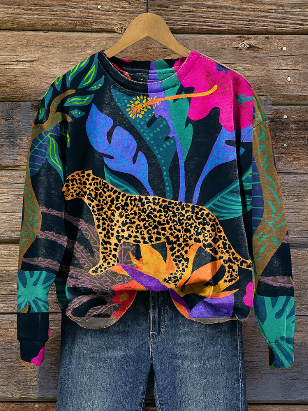 Sudadera para mujer con estampado animal y cuello redondo, elegante y