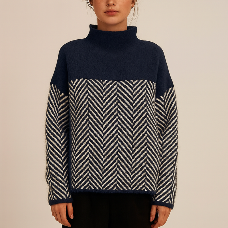 Suéter elegante de mujer con cuello alto y motivo de zigzag