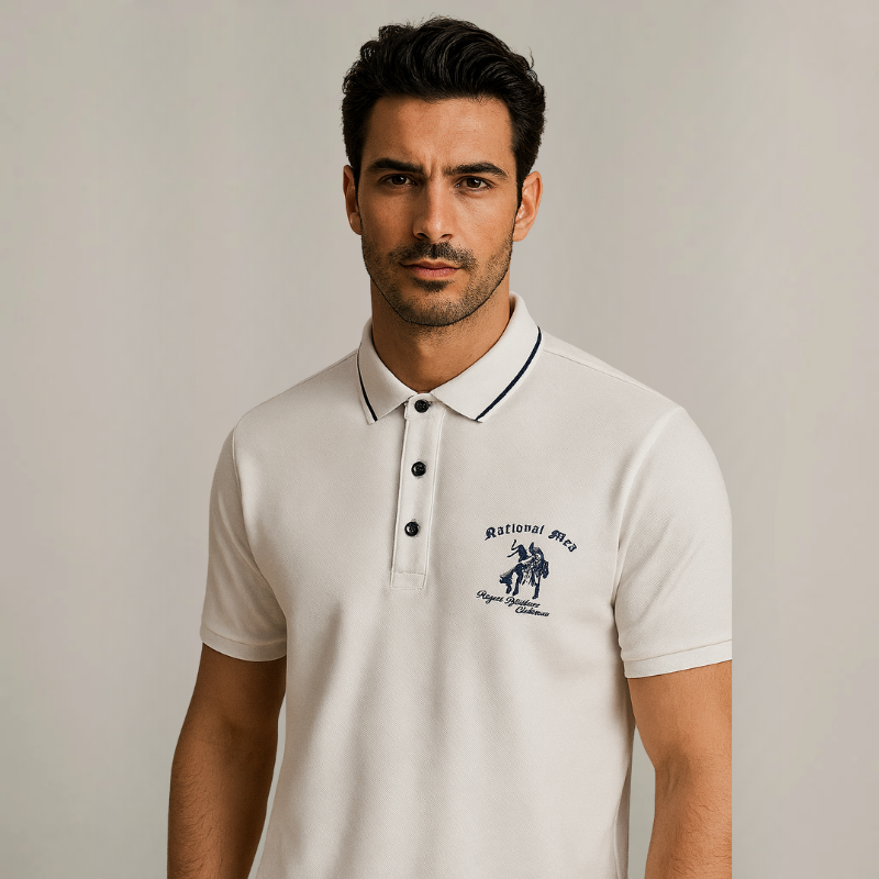 Detalles: bordado discreto en el pecho, interior del cuello cuidadosamente acabado